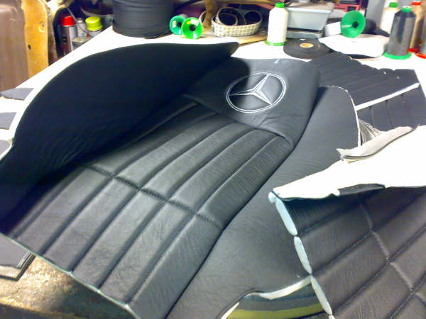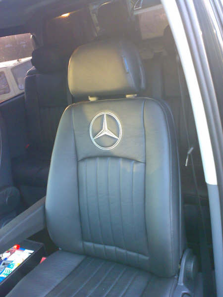 Voor deze bus is een lederen interieur gemaakt met het logo geborduurd in de voorstoelen.
